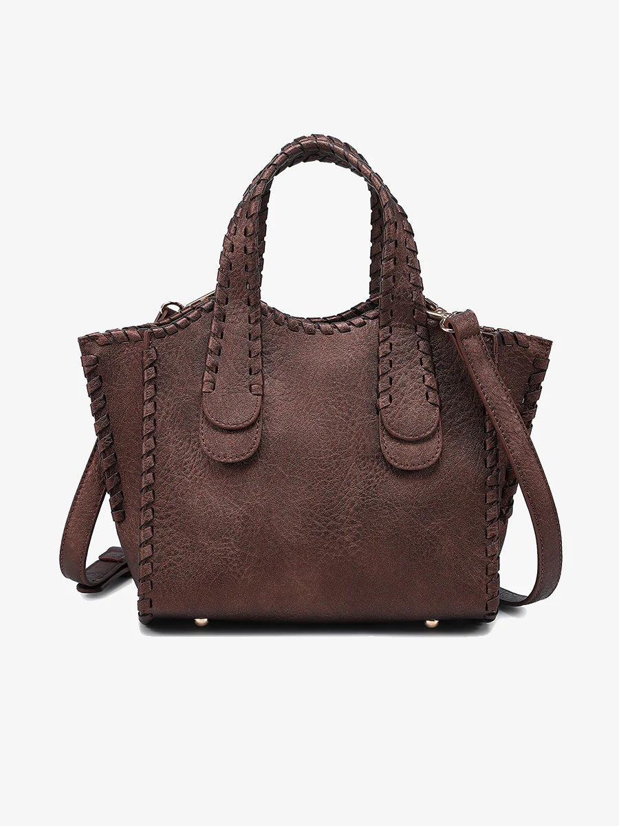 Marla Cocoa Pearl Whipstitch Satchel Jen & Co Bag