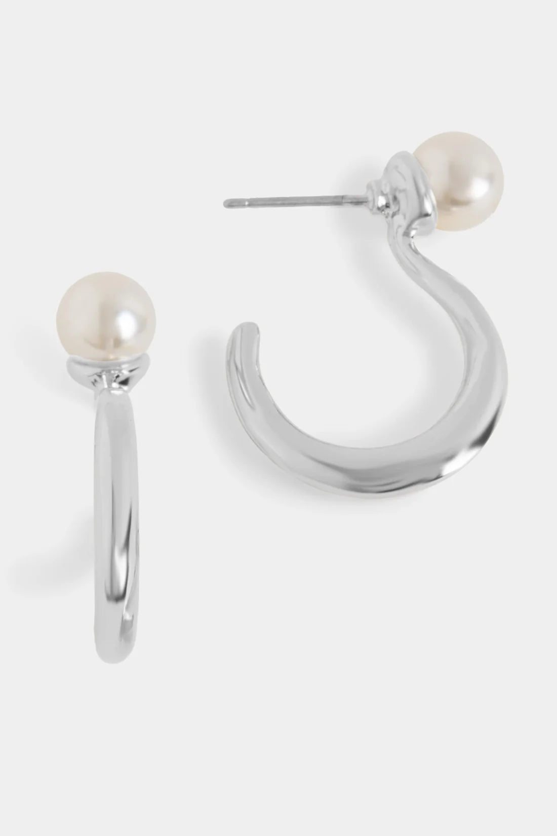 Whispers Pearl Question Mark Hoop Silver Earrings