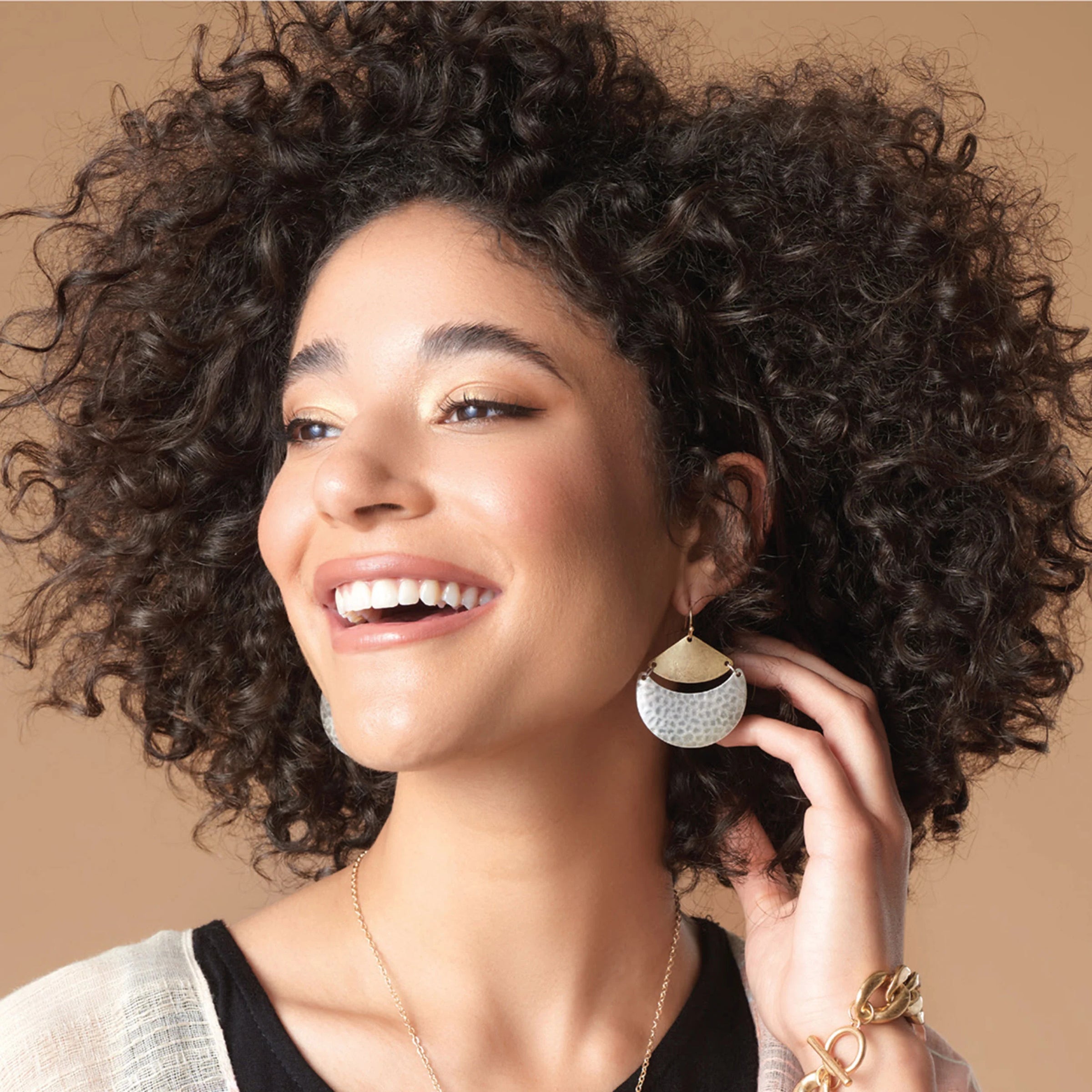Whispers Swinging Moon Mixed Metal Dangle Earrings