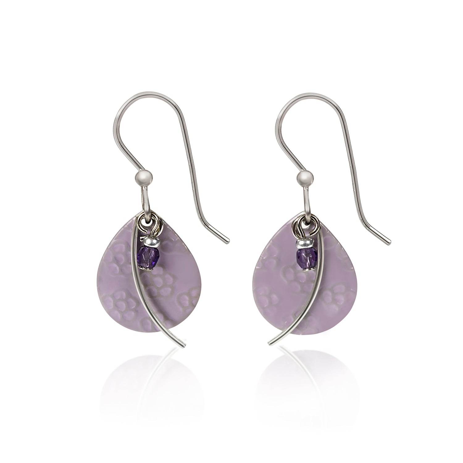 Floral Texture Tear & Wisp Silver Forest Earrings