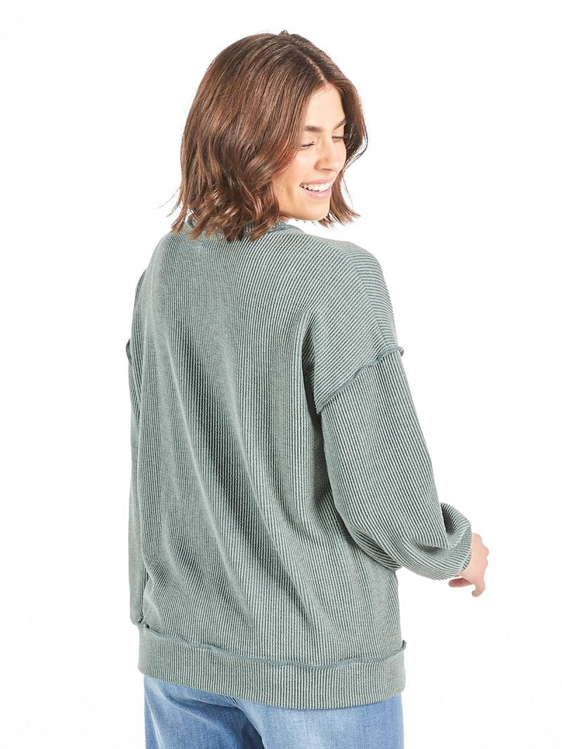 The Amber Top is an oversized silhouette with forward side seams and dropped hem. Features crew neckline and balloon sleeves with cuff.