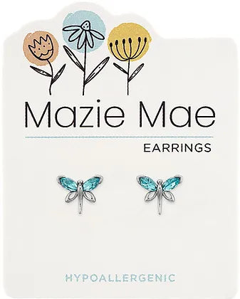 Aquamarine Dragonfly Stud Silver Stud Mazie Mae Earrings