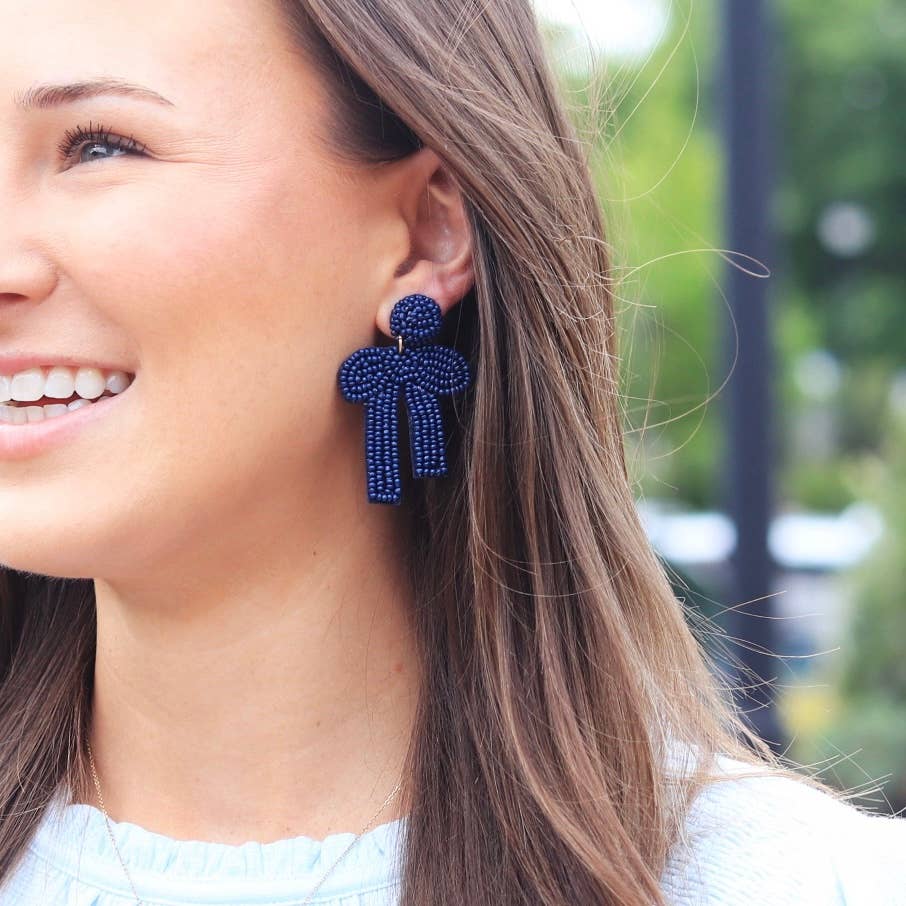 Because Earrings Always Fit! Elevate your everyday style with Pierce + Hide's stunning statement earrings. Made with high-quality materials, their earrings are not only affordable but also designed to last. Earrings are lightweight, comfortable and on trend. These Earrings are: 2", custom design, hand beaded, seed bead, and made with nickel-free post.