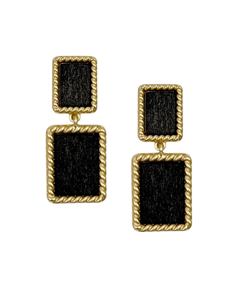 Emma Black Double Square Metal Frame Post Earrings