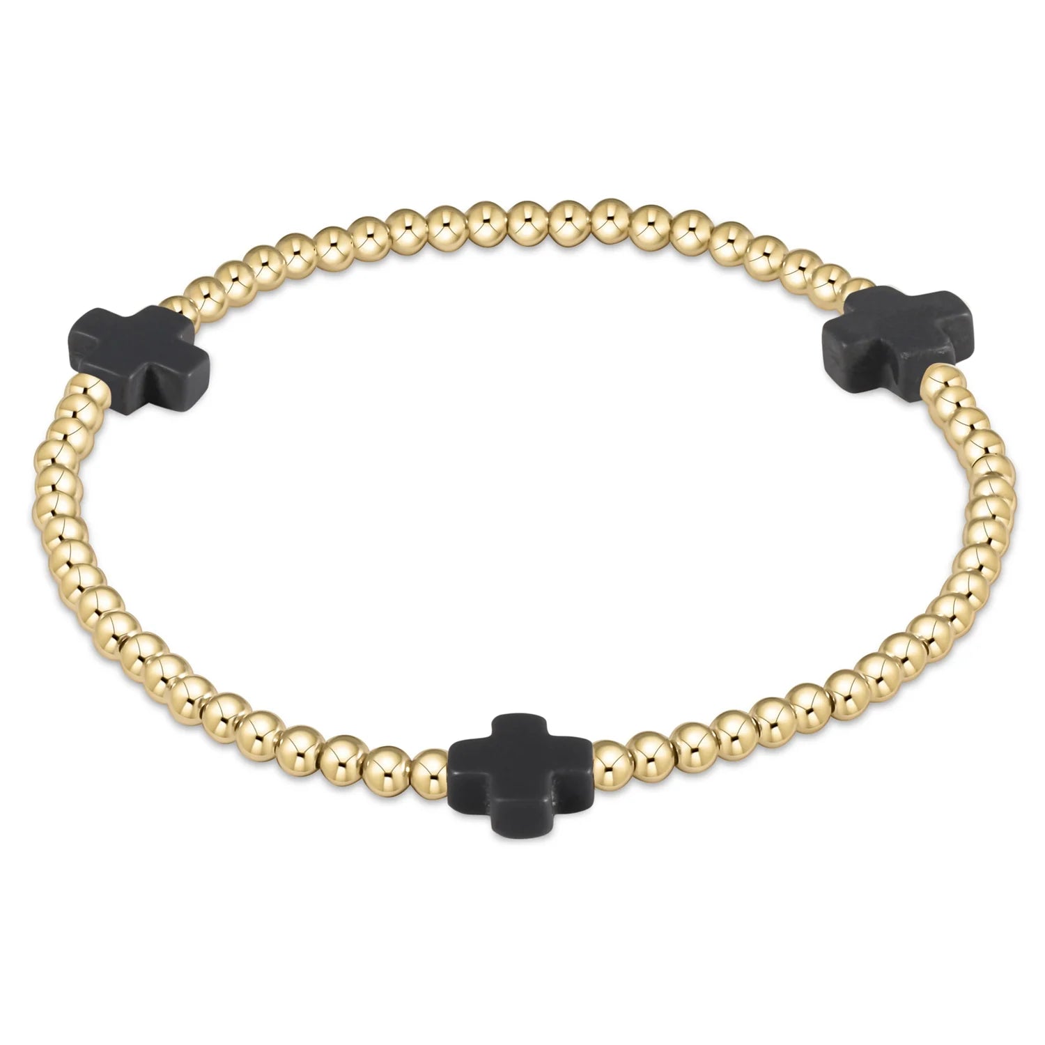 Enewton Extends Onyx Signature Cross Gold Pattern 3mm Bead Bracelet