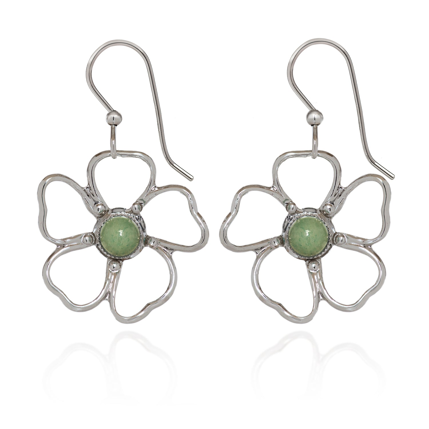 Flower With Aventurine Stone Center Spirit by Silver Forest Earrings