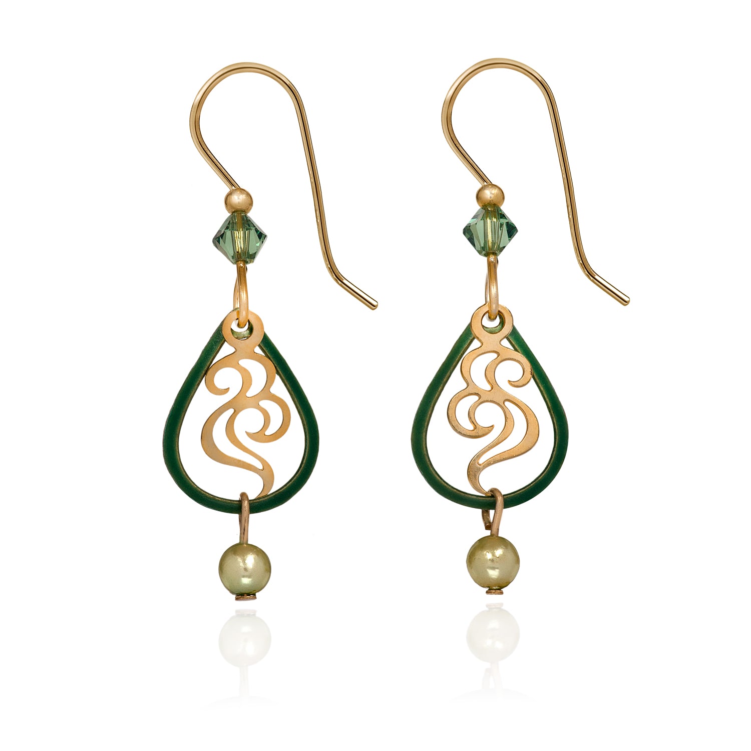 Green Tear With Bead Silver Forest Earrings