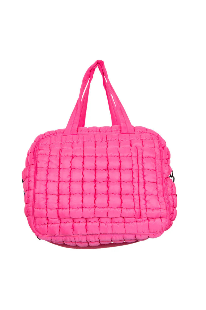 Hot Pink Quilted Katydid Duffle Weekender Bag with Pass-Thru Slip