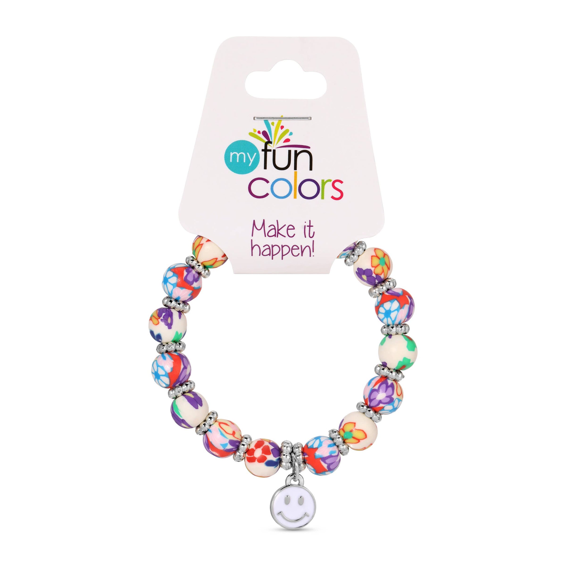 Blue Floral Kids Clay Beaded Stretch Charm Bracelets