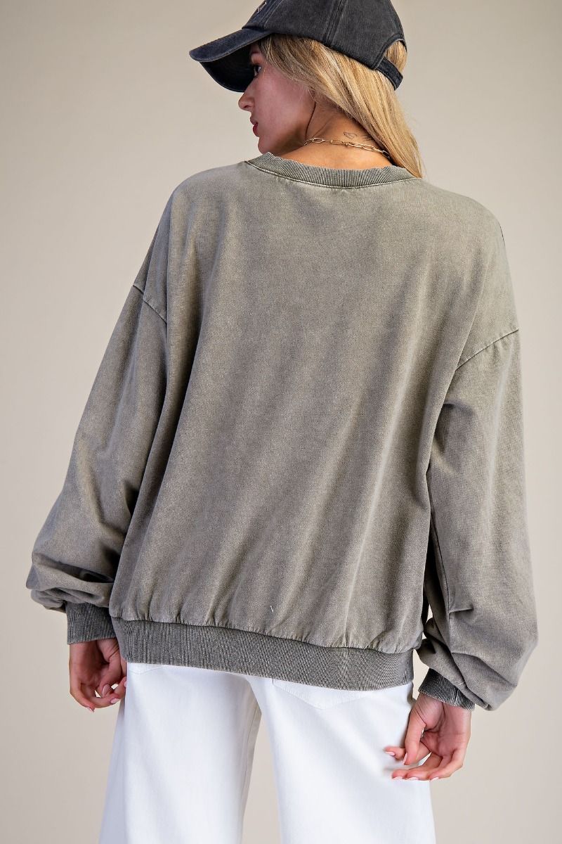 Marlow Faded Mocha Mineral Washed Terry Knit Pullover