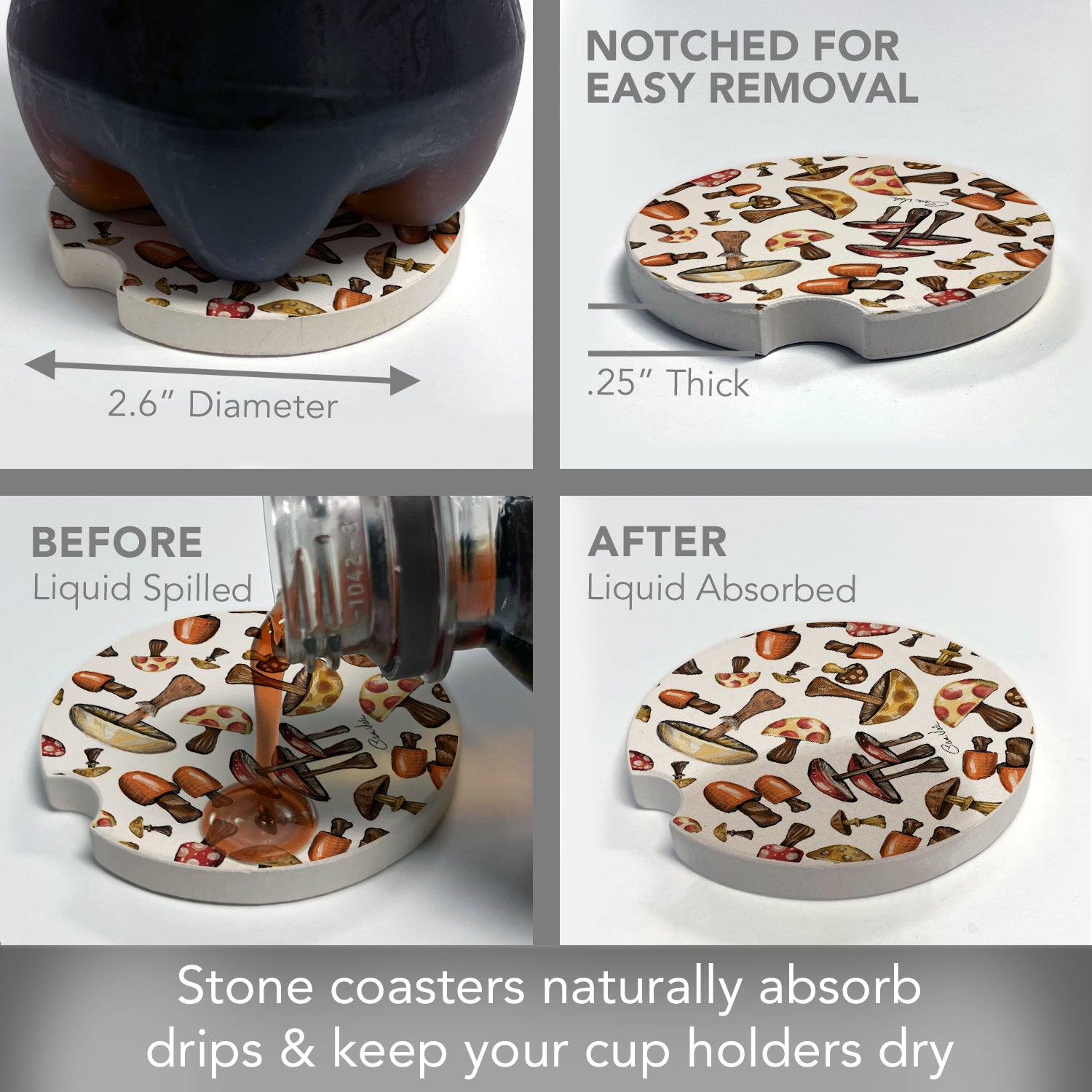 Absorbent Stone Car Coasters are an innovative way to keep your vehicle’s cup holder dry by absorbing condensation from beverages. The unique finger-slot makes it easy to remove the coaster for cleaning.