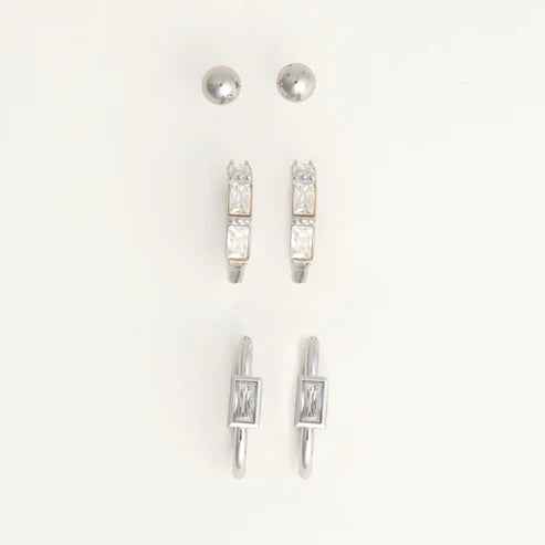 Narelle Silver Waterproof Rectangle Hoop Earring Trio