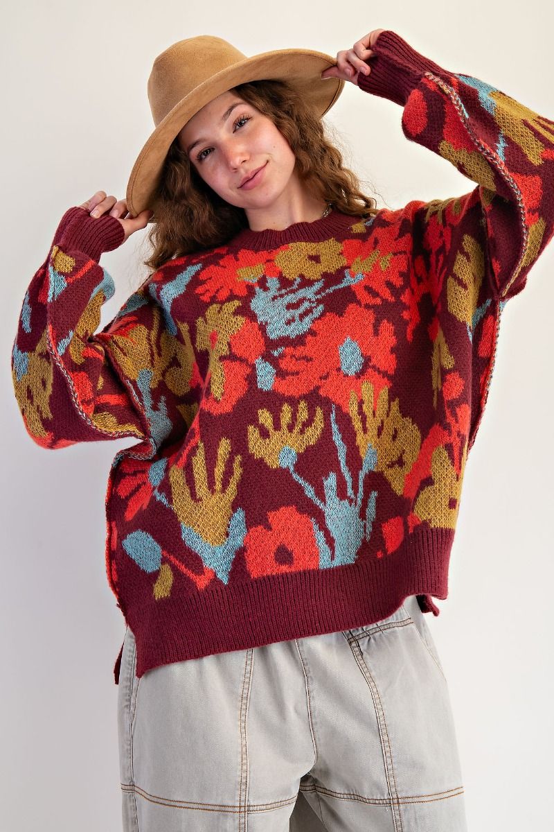 Painted Petals Floral Pullover Sweater