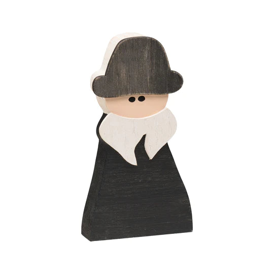 Man: Black Washed Wood Body, 3D White Washed Collar, and 3D Black Washed Hat.