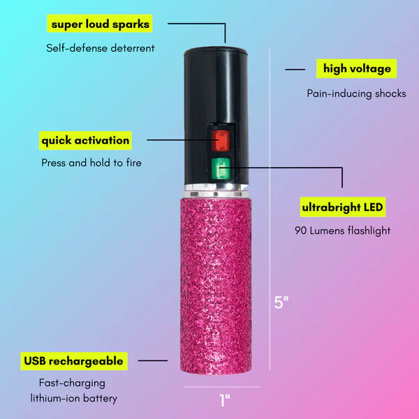 Bling Sting's mini stun gun is a must-have in any woman's safety arsenal. With a high voltage electric current and rechargeable lithium-ion battery, this device provides immediate protection at her fingertips. Plus, the 90 lumen LED flashlight ensures visibility in any dark situation.