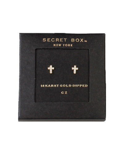 Tiny CZ Gold Dipped Cross SecretBox Earrings