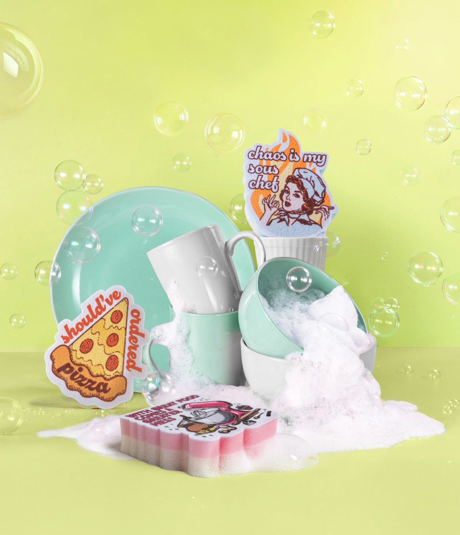 Ready for everything and the kitchen sink, these super absorbent sponges feature two types of scrub pads for light and tough messes. Available in six relatable, tongue-in-cheek designs for gifting and impulse purchases.